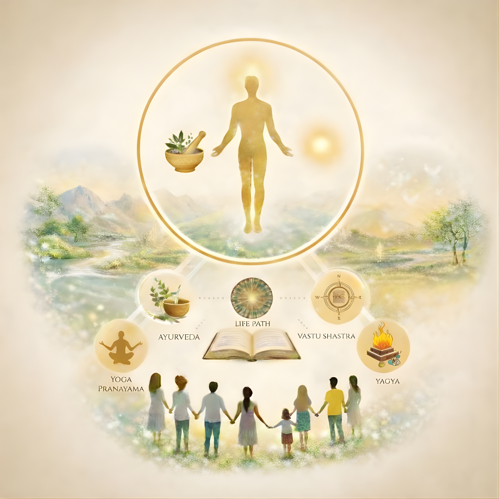 and healthy. We strive to preserve and share ancient Vedic knowledge while promoting preventive healthcare, ethical living, and spiritual growth through education, research, and personalized guidance. Our integrated